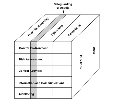 There is a direct relationship between objectives, which are what an entity strives to achieve, and components, which represent what is needed to achieve the objectives. In addition, internal control is relevant to the entire entity, or to any of its operating units or business functions. This relationship is depicted as follows: