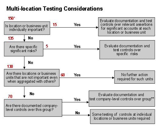 B13. Illustration B-1 depicts how to apply the directions in this section to a hypothetical company with 150 locations or business units, along with the auditor's testing considerations for those locations or business units.